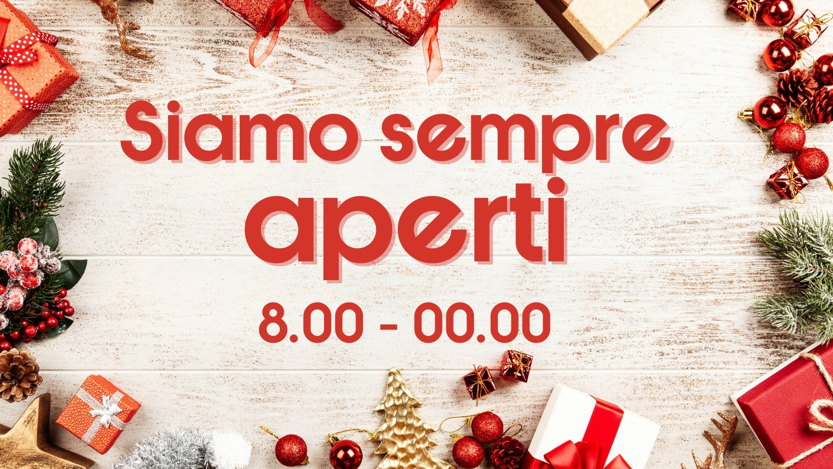 Durante le feste, il tempo è prezioso e noi vogliamo aiutarti a viverlo al meglio. Per questo motivo, saremo sempre aperti, dalle 8.00 fino alle 00.00, per darti la possibilità di venire a trovarci quando preferisci. E se non hai voglia di uscire, non preoccuparti: il nostro servizio di consegna a domicilio è sempre attivo. Potrai ricevere direttamente a casa tua tutte le nostre prelibatezze, pronte da gustare.