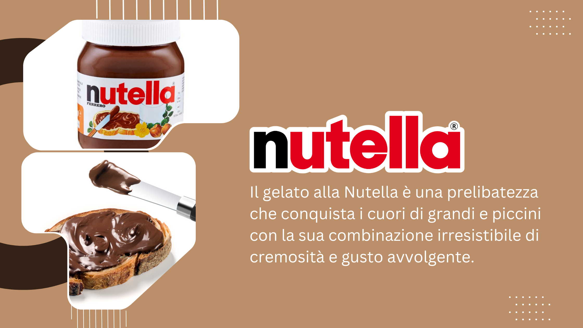 Immagina di assaporare un cono di gelato alla Nutella, la cremosità si scioglie in bocca regalando un'esplosione di sapori deliziosi.